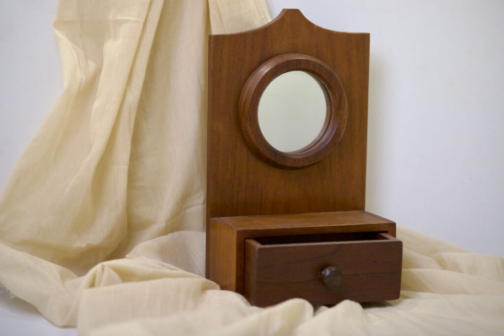 A wooden mirror box with a drawer, made in 2016. As a beginner, I chose to work with a simple box form but added a mirror to make it more functional. This was one of my first explorations in combining utility with design.